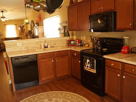 - Kitchen: Bar, Counter Tops-Granite, Cabinets-Stained, Floors-Vinyl