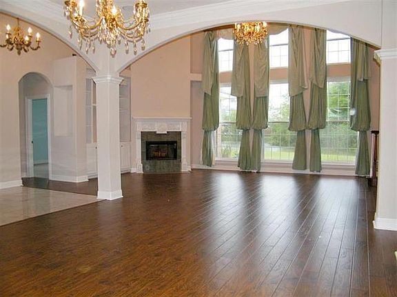 Custom built home in cul de sac on pond! Open plan w/high ceilings. Living room w/ bookcase & fpl. Formal Dining & Living new wood floors. Den area w/wet bar & built in ET center & fpl. Gourmet kitchen, LG Pantry. 2 bedrooms down, 2 upstairs & study/rec room & office. Offers great possibilities. Full bath down & full bath up. Huge master w/sitting area & fpl, mst. bath w/jetted tub, sep. shower, 2XL WIC. Nice laundry/mudroom combo, mop sink. LG storage room w/oversized garage and many amenities.