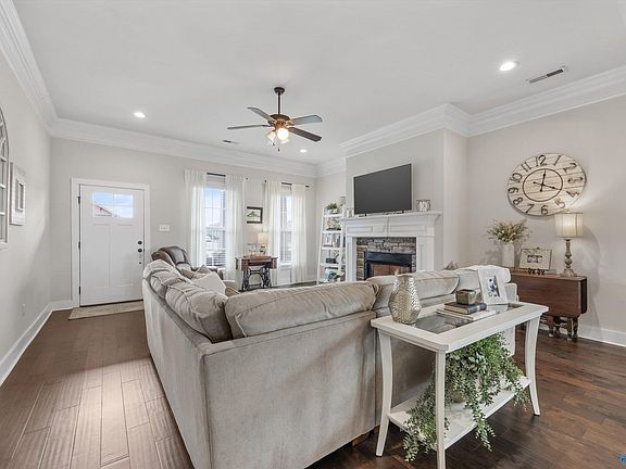 Welcome to this beautiful home in the established Natures Trail neighborhood in Madison!! Step inside and enjoy the large living room with the stone fireplace and detailed crown molding. The open concept floorplan make hosting easy and fun. You will love cooking in the kitchen with plenty of cabinet space and the large granite island. The 4 bedrooms are secluded on one side of the home with the primary bedroom in the back. The spacious primary bathroom offers a tiled shower and large tub. Many upgrades were added. Come see this one today!!