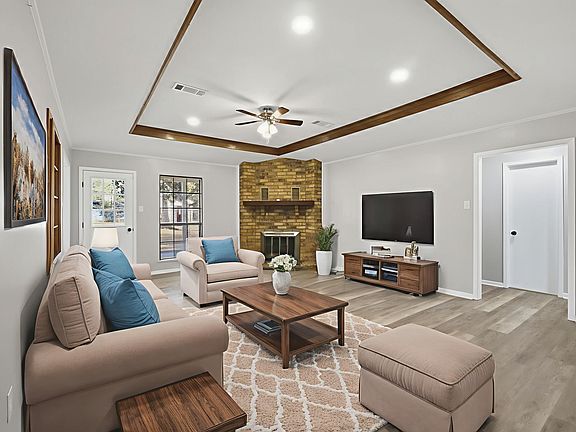 This updated 4 bedroom, 2 bathroom home has the space and features today’s buyers are looking for. There’s also a bonus flex room that works great as an office, workout room, or playroom. Inside you’ll find fresh paint, vinyl flooring throughout, and a cozy wood-burning fireplace in the living area. The kitchen has granite countertops, subway tile backsplash, stainless steel appliances, and a walk-in pantry, plus an inside laundry room for convenience. The split floor plan gives the primary suite extra privacy, with a walk-in closet and a tiled walk-in shower. Out back, enjoy a fenced yard and storage shed. The garage has been enclosed for extra living space but still opens for storage. Roof replaced January 2026.