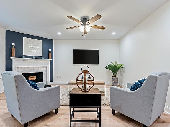 This 4 bed/2 bath home has been beautifully renovated using a warm color palette and custom touches typically found in designer homes and is truly MOVE-IN READY! Kitchen highlights include upgraded granite countertops, 42 inch tall upper cabinets, tile backsplash, new Samsung stainless steel appliances, and wine bar/beverage station. Features in the spacious primary ensuite include double walk-in closets, long double vanity, large soaking tub, and frameless glass shower with premium tile, storage niche, & rainfall shower head. Other points of interest include a beautiful accent wall in the foyer, stacked stone fireplace with mantle in the living room, all new laminate & tile flooring and fresh paint throughout, all new plumbing & lighting fixtures, and a 2 car garage. The privacy fenced backyard has a covered porch and is low maintenance. The welcoming neighborhood of Old Ivy is conveniently located to Timberline Golf Course, I-65, schools, restaurants, shopping, and more.