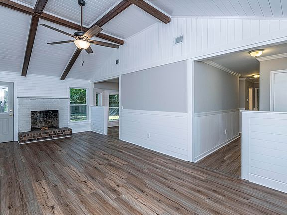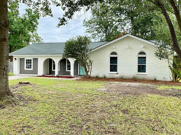 FULLY RENOVATED brick ranch in Sangaree! 4 bedrooms, 2 baths, 1,620 sqft. on a slab foundation so no potential for crawl space issues.. Roof and HVAC new in 2019. Kitchen features granite counters and stainless steel appliances. New LVP flooring in the living areas, tile in baths, and new carpet in bedrooms. New windows, interior doors, water heater, panel box, and fresh paint, and more. Basically a new home! The living room has a beautiful vaulted ceiling that's been completely shiplapped except for the exposed wooden beams! Master bedroom is good size and on the rear of the home with walk-in closet. Master bathroom features en-suite w/ dual vanities. Enjoy the screened porch and huge private fenced backyard with double gate. AND NO HOA & X Flood Zone. Don't miss out on this amazing home!