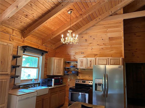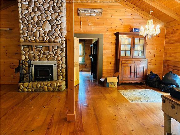Awesome log cabin situated on 7 acres - Beautiful woodwork thru-out. 2 fabulous bath - 2 bedrooms - open concept kitchen and living room - stone buck fireplace in living room - Easy access to Corrider G. Has access to Hatifield/McCoy trail. Covered front porch and rear deck on back of home.
