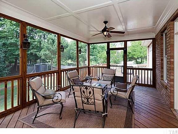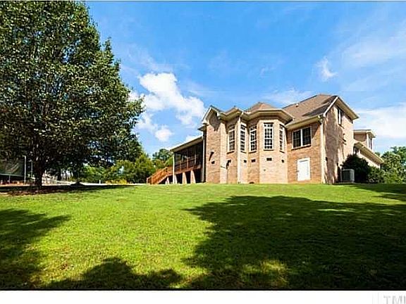 All Brick Custom Ranch-4Bdrm/4bth/bonusRm. 3Bdrms on main floor & 1bd second floor w/full bath&Bonus RM.You will absolutely fall in love with this floor plan & kitchen.Windows w/transoms that reveal the entire private wooded lot w/pond ownership & view,simply serene. Gourmet kitchen has Fire place and ceiling soar 12 ft high w/5 burner gas cook top, double oven w/convection micro.Living Rm boasts 14 ft ceiling and 2nd Fire place. Heavy trim package through-out home. Great traditional schools 2 mins away. Community pool/playground/tennis. House shows brand new. 1.17 acre lot, cul-de-sac! Tons of upgrades.Original owner. Van pools that commute to RDU daily. 3rd floor walk in attic.