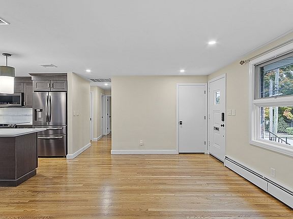 Welcome to this meticulously maintained 3 bedroom home in Waltham! Perfectly nestled in a picturesque neighborhood, this home offers a sun-filled living room centered by a beautiful brick fireplace & gorgeous bay window. The kitchen provides access to the newly redone deck along w/ dining area & ample cabinet storage. Open layout to the dining room is great for entertaining! 3 spacious bedrooms w/ ample closets, a remodeled bathroom & gleaming hardwood floors complete the first level. The lower level features additional living space w/ an impressive brick fireplace perfect for a family room, office & more! Recent updates include a new asphalt driveway & sidewalk & newer windows. Bonus features include 3 canvas awnings, outdoor antenna for Sirius satellite radio, solar hot water system, Leaf Guards on gutters & an outdoor sprinkler system.Triple-Pane windows & fully insulated attic help keep the house cool in the summer & warm in the winter! This home is not to be missed! See it today!