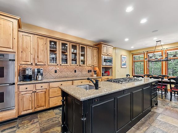 The open floor plan is ideal for entertaining, featuring a gourmet kitchen, spacious great room with stone fireplace and a large second living area with billiards, ping pong and a wet bar. Additional highlights include 4.5 bathrooms, a dedicated office, library/loft with balcony, expansive sunny deck with a hot tub and a 3-car garage. Mountain views, easy access to trails and a newly installed boiler make this well-maintained home a rare in-town gem!