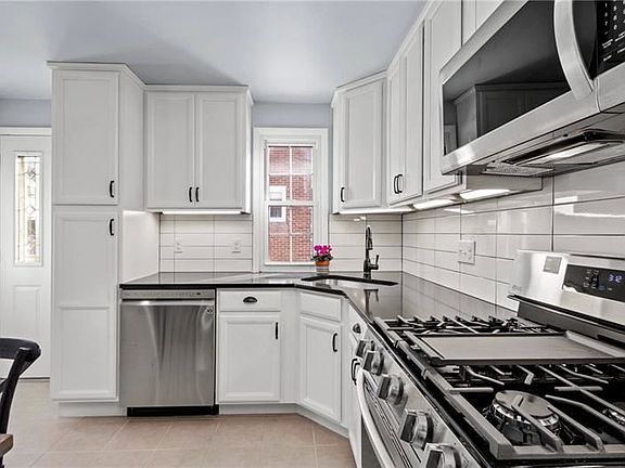 Freshly landscaped & meticulously renovated 3B/2.5B brick home. Walk into the sun drenched living room & enjoy your newly refinished HW floors. The kitchen has new soft close cabinetry, high-end s/s appliances including refrigerator, gas stove(air fryer/griddle), dishwasher and microwave oven, quartz countertop & subway tile backsplash. Off the kitchen is a full bath & accent wall leading into the newly appointed owners suite. Refinished HW floors & windows lead the way to the new owners suite bathroom. Walk in closet w/newly installed closet system, a gorgeous quartz counter w/ navy double sink vanity, new shower surround & a "comfort height" commode finish off this space. On the first floor you have 2 additional bedrooms. LL has luxury vinyl flooring, a bright open space w/built in bar area, half bath, laundry room & 2 oversized integral 1 car garages (13x25 &15x22) w/ man door leading to patio. The covered rear patio w/epoxy flooring overlooks the rear yard &additional parking.