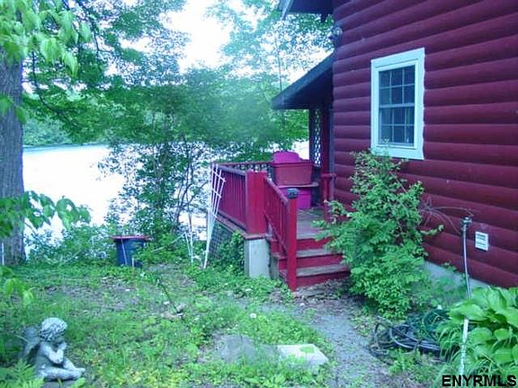 Onderdonk Lake. Lovely set Lake Front Home with dock area & 134' of Lake Frontage. Great open views from covered wrapped porches. Landscaped with large garden shed. Gorgeous stone wood burning fireplace in Family/Great Room. Beautiful wood ceilings thru Family Room, Kitchen and Dining Room. Full kitchen w/appliances and side porch entrance. Master ensuite on 2nd floor with an additional closet space plus other 2 bedrooms. 1st floor office space or guest bd. Home has propane hot air heat with central air.
