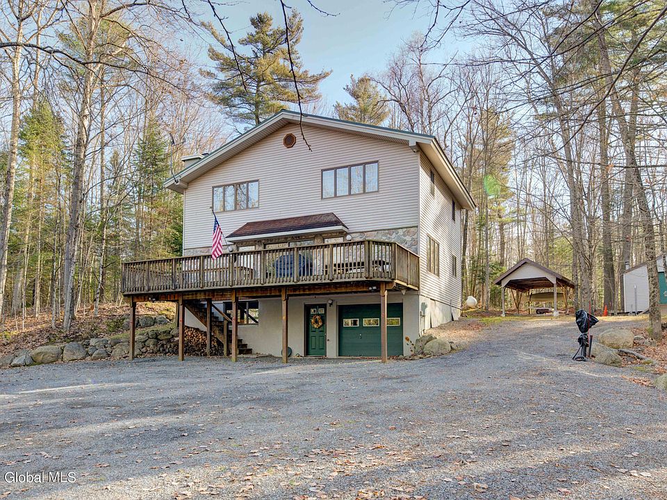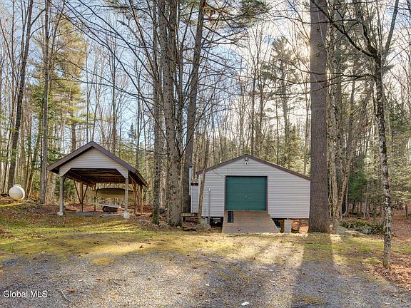 This beautiful, well maintained home is situated on a quiet side road in the Sacandaga Lake Estates and has access to the lake via 2 different lakefront parcels, along with a deeded dock space. Spend summers swimming, boating& fishing and access hundreds of miles of groomed snowmobile trails in the winter, right out your door! The drive in/drive out shed provides plenty of storage for all of your outdoor ''toys'' and the tall carport is a perfect spot to store a boat. A large kitchen and open floor plan of the living and dining rooms allow for entertaining groups comfortably. Basement is partially finished with knotty pine walls and carpeted stairs. It is secluded, but convenient to the Village of Speculator, where you will find shopping, dining, Camp of the Woods and Oak Mt Ski Center.