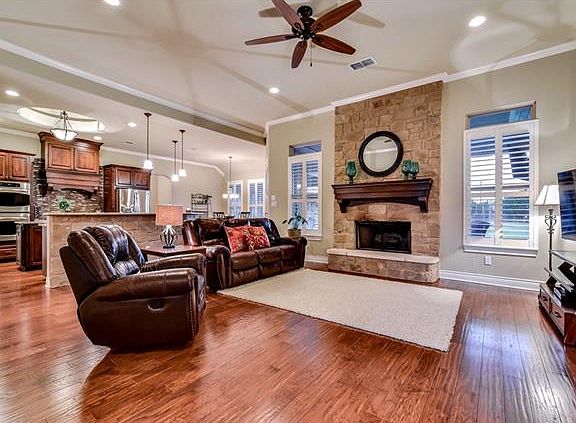 Every man's dream is on this 1.02-acre property featuring a 30'X50' Workshop/RV or Boat Garage w/ a bedroom & full bathroom upstairs. Beautiful custom home offers a bright, open layout w/handsome wood floors & a stone fireplace. Kitchen boasts rich wood cabinetry, dbl convection ovens, gas cooktop, & more. Master retreat w/ a tranquil ensuite & his/hers closets. Expansive porches provide relaxation to enjoy the view. WCAD sqft does NOT include 1br/1ba in shop