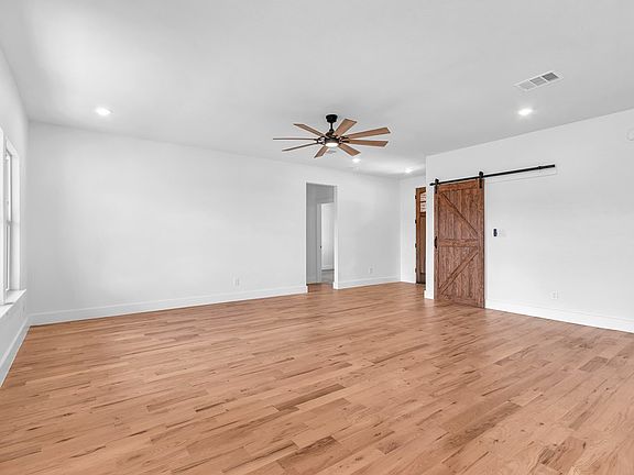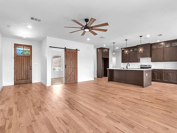Tall ceilingsWood barn doorPantry provides additional storageGorgeous ensuite bathDesigner tile floor