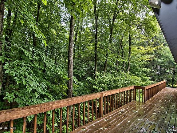 Everyone is invited! Beautiful spacious TIMBER TRAILS home welcomes all gatherings. 6 bedrooms, 4 full baths. Warm, rustic interior with soaring high ceilings and lots of windows. Large kitchen with island. Loft overlooks open living room with a real stone fireplace and vaulted ceiling. Family room complete with wet bar opens onto generous deck perfect for entertaining. Laundry room, plenty of storage, and a 2car attached garage. Natural 1+ wooded acre, plus fantastic amenities in one of the Poconos' highest-rated communities.