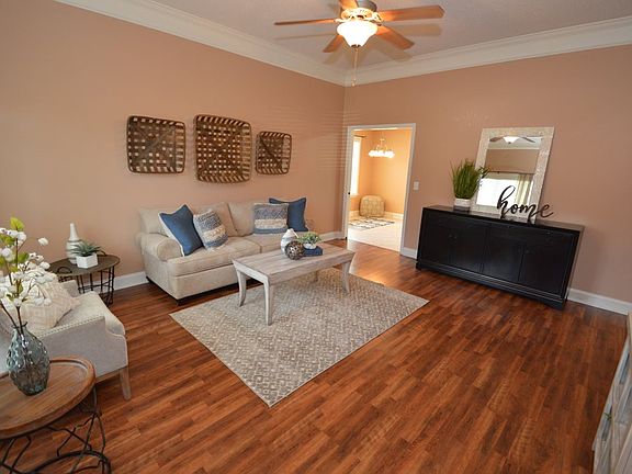 Precious 3 Bedroom, 2 Bath Home with 2 car garage in Bonaire! Zoned for Veterans High! Covered front and back porches. Lots of natural light. Laminate flooring in Great Room & hallway. NEW Carpet in Bedrooms! Ceramic tile in Kitchen & wet areas. Kitchen features refrigerator, stove, dishwasher, microwave & pantry. Master Bedroom with trey ceiling, walk-in closet, garden tub, separate shower with tile surround and double vanity. Privacy fenced backyard with no back door neighbors! Convenient to RAFB!
