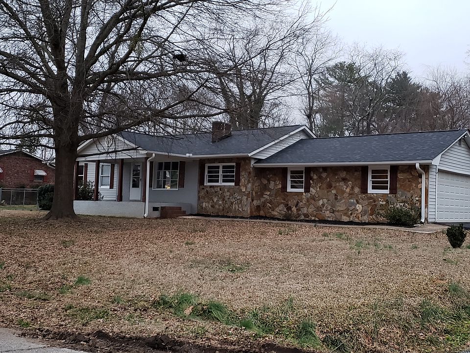 Completely renovated 3 bedroom / 2 bathroom house in a quiet, established neighborhood. Come into the home off of the huge rocking-chair front porch, into an open living space that includes a large bay window, brick fireplace, and large breakfast area. This all leads to a bright Sunroom with 4 French doors for tons of natural light! The huge kitchen has lots of storage (2 lazy susans!), a brand new deep stainless steel sink, and beautiful brand new countertops. The front of the house has 2 large bedrooms, a full bath, plus a flex room! And the spacious master bedroom is privately situated at the back of the house with a closet the size of a small bedroom, as well as a large bathroom with double vanity and tons of storage options. For entertaining, you have a screened in porch off of the sunroom, which then leads to a newly poured patio and a fenced-in yard that is more than a half acre. This house is ready to move into, so bring the family & pets!