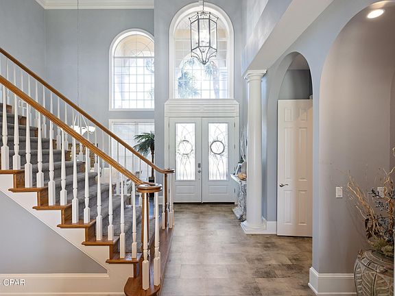 Short Term, Month to Month. Gorgeous executive home located in the Exclusive Gated Community of Legend Lakes, Jack Nicklaus Golf Course and fully furnished! . This home is close to 4000 sq. ft, and fully remodeled interior and exterior in 2020/2021. Home features a family room, bonus room, formal living room, 4 bedrooms, 5 bath and Mother In Law Suite. As you approach the custom paved circular driveway, you are greeted by charming character at the entrance with high pillars and custom doors. Entering the Foyer, your formal dining will be on the right next to the lavish stair case. A formal living area with French Doors and views of the pool and golf course. Taking a left you will enter the large master on the 1st floor, with Trey Ceilings and French Doors exiting to the pool. The master bath has a shower, large, jetted tub, three sinks and oversized closet. Crown molding throughout, 22' high family/dining room ceilings, stately columns, and numerous updates and custom half bath. Interior completely remodeled with new flooring, lighting and fixtures. The kitchen is unbelievable with white cabinets, blue pearl granite counters, mosaic backsplash, new stainless-steel appliances with double oven and gas stove and double sink. Large breakfast bar can accommodate seating of 6. New built in surround system, 72-inch electric fireplace and 82' tv. Additional large guest room on the 1st floor with its private exterior entrance. Second floor has a large bonus /family room with full bath and guest rooms. Mother-in-Law suite room has a full bath, bedroom and living room. Craftsmanship throughout with arched hallways and balcony. Oversized 3 car garage with golf cart storage. The back yard is beautifully landscaped and extended cool deck patio. Exterior half bath and shower. Patio is oversized and includes natural gas for your grill. Sprinkler system throughout and fully fenced in. Sitting outside you can watch the sunrise and sunset and pristine views of the golf course in the evenings. Located near shopping, beaches, St Andrew State Park and restaurants. Golf membership not required and new renovated marina approaching for those boat lovers. This home has it all and best of all, still has the new wow factor look with craftmanship throughout and no wear and tear.