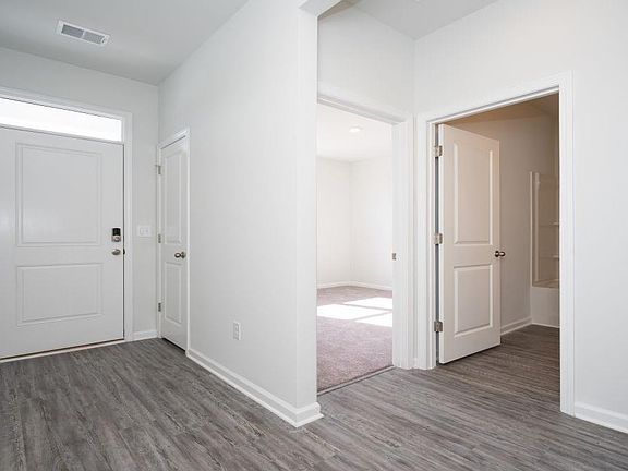 Our Cali plan is the perfect one level home with a beautiful, open concept living area for entertaining. The kitchen features granite countertops, an oversized island, 36" white painted cabinets, walk-in pantry, and stainless appliances including a gas range. The large owner's suite is tucked away at the back of the home, separated from the other bedrooms, with double vanity, 5' walk-in shower, and linen closet in the private master bath. Low maintenance laminate flooring throughout the main living areas gives the look of wood with easy care and cleanup! Spacious covered rear porch adds additional outdoor living space. Smart home system, tankless water heater, and garage door opener included! This Cali is situated on a private lot in this quiet neighborhood. *Photos and virtual tour are of a similar Cali home. (Home and community information, including pricing, included features, terms, availability and amenities, are subject to change prior to sale at any time without notice or obligation. Square footages are approximate. Pictures, photographs, colors, features,and sizes are for illustration purposes only and will vary from the homes as built. Equal housing opportunity builder.)