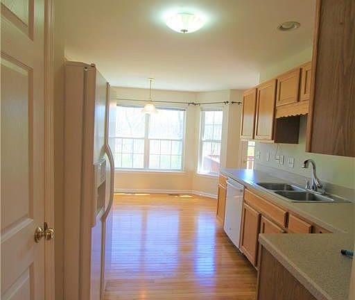Beautifully maintained townhouse in sought after Lexington Meadows community. The townhouse offers 3 fully finished levels with hardwood floors throughout the unit! Main level has Eat-In Kitchen, pantry, rich oak cabinetry, and beautiful views of wooded land. Dining room, living room and a powder room complete the main level. Upstairs, you will find 2 bedrooms and a study (possible 3rd bedroom) and Laundry. The spacious master bedroom has vaulted ceilings, a full bath with double sinks and a walk-in closet. A generously sized bonus/family room with gas fireplace, walkout to patio, and bonus storage complete the lower level. 2 car garage. Beautiful pool directly across road. Pets allowed. Conveniently located within minutes to schools, park, shopping, Starbucks, Target, restaurants, Highway. 12 minutes to NY line, commuters delight. 546 sq. ft of finished, walkout space is included in total square footage.