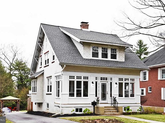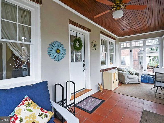 Looking for period Craftsman detailing with modern upgrades? This is the home to end your search! Lovingly maintained and upgraded with a new roof and central air, so many wonderful original architectural features have been preserved. Nestled on a spacious lot, the sun porch welcomes and amazes all. Shaded by a large tree, light pours in from the original transom windows and Arts and Crafts style full glass door. Appreciate the tile floors and spectacular wood ceiling with fan. All the home's exterior doors are new with oil rubbed bronze hardware. Step inside to a sunny interior with neutral paint, original hardwood floors, original trim work, high baseboards, two panel wood doors and NEW light fixtures, ceiling fans throughout. The living room can accommodate 2 seating areas, has a ceiling fan and windows to capture all the views. A spectacular period brick fireplace with a wood mantle has been updated with a wood burning stove that can inexpensively heat the entire home. The staircase situated on one wall has a grand curved hardwood two step landing and treads, period newel post and is lit by even more windows! A large cased entry opens to a dining room sure to host many a memorable gathering. A gracious wall of windows has a custom radiator cover with built-ins as well as a built-in corner china closet. Continue into the nicely appointed modern kitchen with plenty of storage and a sink with gooseneck faucet, tiled backsplash and disposal under the deep silled windows, perfect for herbs. Notice the tiled floors, ceiling fan, recessed lighting, built-in trash and recycling bins and all two year young energy efficient appliances ~ Whirlpool dishwasher and all GE Profile smooth surface electric range, built-in microwave and refrigerator with ice and water dispenser. Beyond is a powder room with tile floor next to a French door accessing the rear porch and yard, offering wonderful entertainment opportunities. The driveway was widened to accommodate extra parking and a gazebo with concrete floor is perfect for al fresco dining in the fenced private yard that has a large stone fireplace. Finally, time to see what awaits at the top of that beautiful staircase! The upper level boasts a wide hallway with a large louvered door closet, a master bedroom, two additional bedrooms and a large full bath with barn door, tile floors and tub with shower surround. Airy and relaxing, the master bedroom has a triple window and incredible walk-in closet. Bedroom two has built-in shelves and a large walk-in closet, while bedroom 3 has a ceiling fan, deep closet and triple windows. Everything has been done to make this home comfortable and move-in ready ~ roof replaced (2020), central air (2017), new sewer line (2013), Bradford White hot water heater, programmable thermostat, radon and security systems, basement with sump pump and dryly sealing, remote garage door opener with keypad entry. May tag washer, dryer and one year AHS home warranty are included. Location is convenient to commuting, shopping, schools. Hurry for your chance to see this amazing home!