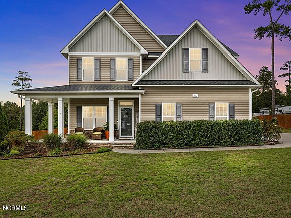 Welcome to 112 Loch Lane in the desirable Sinclair community! 4 Bedrooms, 2.5 Bathrooms, 2,452 SF. Wrap around porch welcomes you into foyer area with office space to your left. Head into the Kitchen where you'll find granite counters, large center island, and dining area. Living Area with gas logs fireplace and lots of natural lighting. All bedrooms upstairs! Owners Suite with trey ceiling, sliding barn door to ensuite bathroom where you'll enjoy a double sink vanity, soaking tub and walk-in shower. 3 other large bedrooms and a full guest bath upstairs! Outside you'll find a spacious fenced back yard, with detached shed, firepit and a covered patio area!