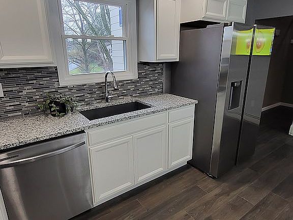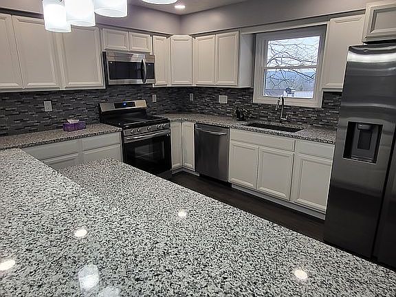 SALE pending! Completely renovated home in Private Sylvan Hills area.3 bedroom 2 1/2 bath 4 level home with huge heated attached garage.New stackable washer/dryer in wash room. Bathroom on main level with spacious living room.Down a few steps into a cozy recreation room with gas fireplace and glass sliding doors. The dining room and kitchen are wide open with new white cabinetry and granite countertops.A center island has more storage and is a place to eat or entertain. Accompanied by new stainless steel appliances.4th level has 3 large bedrooms.A full bath with shower and tub is off the hallway.The Master suite is spacious with a private bathroom.The walk in tile shower has a rainfall shower head. A beautiful lit 72 inch mirror over the vanity. This home has endless closet space. Many led recess lights, sconces, and ceiling fans. This home has all new windows and interior doors. New carpet and tile floors. New baseboard heater covers throughout. All accented with brushed nickel furnishings.This house is uniquely equipped with a huge Central house fan.No need for $100's wasted on Central air each month.Fan cools house down in seconds Very private on end of Culdasac.3 minutes from schools