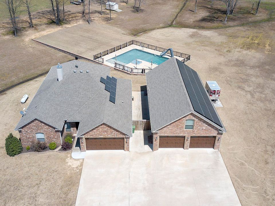 TOO MUCH TO LIST! House, shop, 4+ car garage, solar panels, huge pool, hot tub, in-laws quarters, all on 3 acres. 5 Bedrooms, 3.5 baths (includes in-law quarters), custom tile shower, spacious living room w/gas fireplace & built-ins, custom cabinetry w/granite counters, pantry, laundry w/lots of cabinets, 1 bedroom can be an office, humongous covered patio w/half bath, pool has slide, diving board, & hot tub, 30x60 shop w/epoxy floors, upstairs in-law quarters w/full bath, LR, dining, & bed! Call today!!!