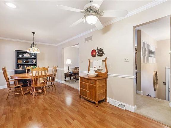 Immaculate split entry home is larger than it appears with a 18x11 first floor Family Room with gas fireplace which is currently used as a formal Dining Room. Laminate wood style flooring for easy maintenance is throughout the first floor with the exception of the Hall and Living Room. Spacious Kitchen has stainless appliances: gas 5 burner/griddle cooktop stove with convection, dishwasher and microwave (less than 2 yrs old). Granite countertops compliment the wood cabinets and tile backsplash. Roof 2020, H2O tank 6 months, a/c 2014. Owner's suite has a half bath. The finished lower level is highlighted with a brick front fireplace with a wood burner stove which includes gas logs, full bath and huge storage room 18x11 with cabinetry and laundry area. Exterior has a patio with pergola with removable cover, level backyard and shed. Wonderful neighborhood which is within walking distance to Center Twp. Municipal Park and ball fields.