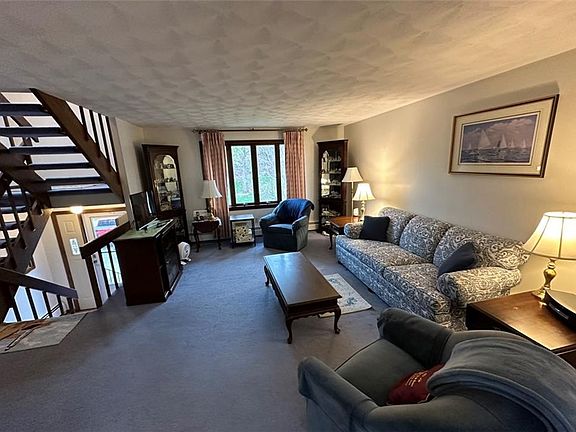 SPACIOUS 3-4 BED 2.5 BATH CAPE STYLE CONTEMPORARY HOME WITH ATTACHED OVERSIZED 3 CAR GARAGE WITH ADDITIONAL STORAGE AREA! LARGE BONUS ROOM ON FIRST FLOOR WITH FULL BATH AND JACUZZI ROOM THAT COULD BE USED AS INLAW SUITE OR MASTER BEDROOM OR FAMILY ROOM. OTHER FEATURES INCLUDE FORMAL DINING ROOM, OFFICE/PLAYROOM WHICH IS LOCATED OFF SPACIOUS LIVING ROOM AND NEW COMPOSITE DECK OFF BONUS ROOM. HOME IS LOCATED ON A QUIET CULDESAC WITH HILLSIDE SETTING AND NICE VIEWS. BASEMENT HAS "MANCAVE" AND EXTRA STORAGE. ALL SITUATED-ON QUARTER PLUS ACRE LOT WITH PRIVATE TREELINED BACK YARD! DONT MISS THIS ONE!!!