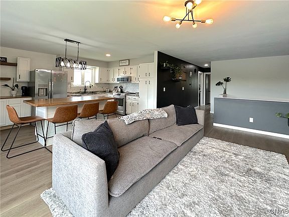 All of the windows are vinyl replacements, and the home is equipped with a tankless hot water heater for efficiency and convenience. Most furniture, as well as lawn and snow equipment, are negotiable with the sale. The seller is also offering a $1,000 credit at closing for replacement of the first-floor carpet.