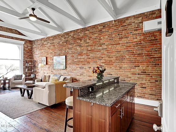 Located in the heart of downtown with a birds eye view of Market and Front Street step inside this condo that exudes both historic and modern charm throughout. Large windows illuminate an expansive living space with vaulted ceilings with exposed beams and the original wide plank flooring showing a century of character you can't make today. The kitchen boasts beautiful solid wood cabinetry with stainless appliances and an island made for entertaining. Follow the exposed brick that runs the whole length of the unit back to two spacious bedrooms and an updated bathroom with a new vanity, lighting, new trim work with new hardware. Top it all off with being steps away from all that downtown offers, restaurants, lounges, bars or just a delightful stroll along the Riverwalk. Short term rentals are allowed and seller has had success, ask listing agent for details.