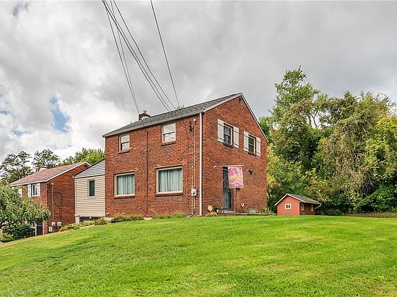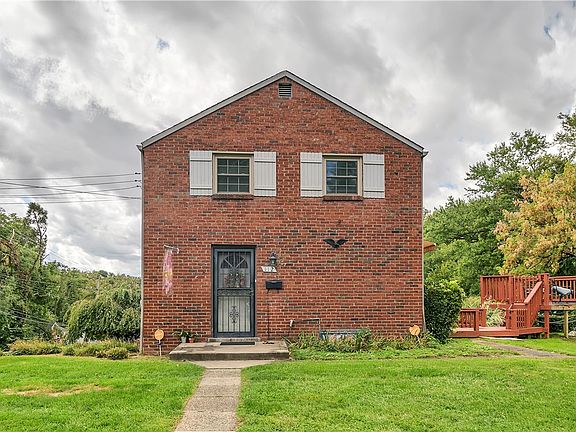 Comfy brick two-story on terrific corner lot. Flexible living space includes the side addition (about 6 yrs. old). Use it as a bedroom or family room, and the powder room/laundry can be converted to a full bath. The 4 yr. old kitchen is lovely, with lots of cupboards and efficient workspace. Freshly painted interior. Vinyl windows in 2009. Large deck, with Sun Setter awning, is about 8 yrs. Hardwood floors under carpet. Level, usable yard, with a cute shed. Level driveway and front entry. Modern full bath upstairs. Roomy basement with extra storage and game room potential. Churchill Valley enjoys easy access to Rt. 376 (Parkway East), a Park N Ride, and all kinds of retail/commercial corridors. The ALT Greenway is close by, for nature walks. This can be your home-sweet-home!