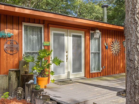 Hidden gem is what comes to mind when thinking of a way to describe this beautifully crafted, fully furnished, beach style bungalow home. This 4 bed, 2 bath, home on 0.29 acres was rebuilt in 2018 into a work of art. The home is wrapped in solid cedar wood and features a vaulted metal roof, perfect on those rainy days. Upon entering the home, the family/dining room has a very warm feel, with lots of raw wood, soft lighting and a cast iron, wood burning stove. Connected to this area is the living room with shiplap ceilings and another wood burning fireplace, featuring a unique driftwood mantel and German schmear brick surround. The kitchen area features solid wood countertops, vaulted, beamed ceilings, updated cabinets and open shelving. The large master bedroom comes with built-in cabinets and a vaulted ceiling. Stepping down into the master bathroom, the center piece is the antique, claw foot bathtub. The rear of the home contains 3 more bedrooms, the family bathroom with tiled, walk-in shower and huge utility room. Tucked behind the palms and heavy foliage, you feel like you're in your own oasis, with lots of edible fruits growing such as figs, grapes and blueberries. Following that feel of self sustainability this home brings, it also features solar panels, a large outdoor storage shed/workshop, commercial walk-in cooler and chicken coop. Conveniently located within minutes to the beach, restaurants, grocery stores and shopping. This boutique home would be perfect as your beach vacation home or make a great rental property. Schedule a showing today as this wont last long! The home is occupied, so please, as a courtesy to the owners, don't go onto the property without your agent present or a showing confirmed.