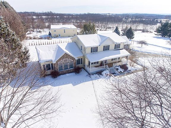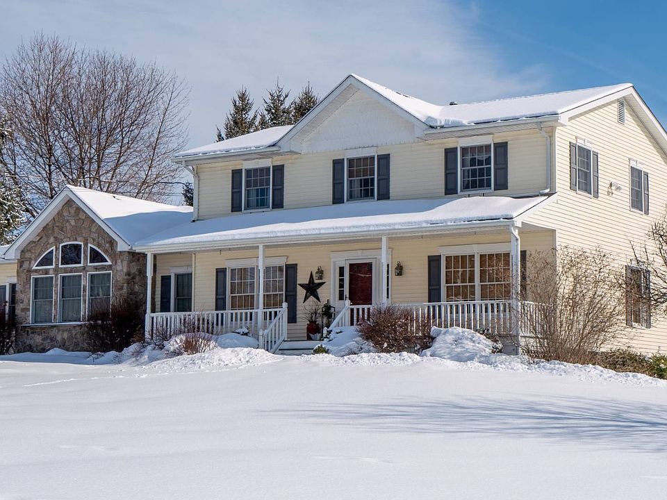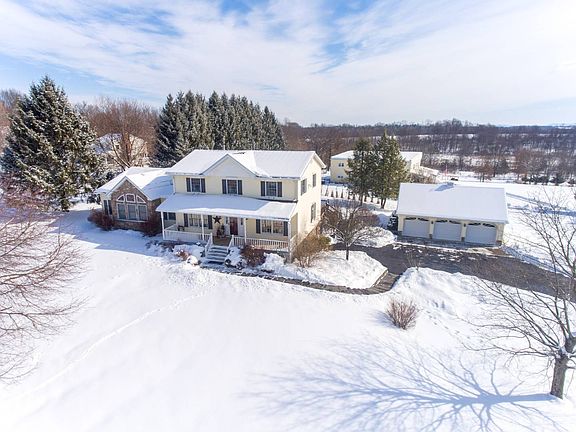 Welcome home to this spacious Colonial with a large 3 car detached garage. Beautiful large open concept kitchen with granite counter tops, a farmhouse sink, seating for 4 at the island with a bar sink and stainless appliances. Enjoy the double sided fireplace while eating dinner. Off of the kitchen is a mudroom, laundry room, dining/sitting room and living room. Extra large 1st floor master bedroom with vaulted ceilings, walk-in closet, full bathroom with a shower and a tub. Walk out to the back porch off of the living room and sit out on the deck under your electric awning. Upstairs there is a second master bedroom with a walk-in closet and a full bathroom, 2 additional bedrooms and full bath. The lower level offers an additional 748 Sq. Ft. of finished space. Huge unfinished space in the basement currently used as a home gym. There is storage space in the attic and also above the 3 car detached garage and numerous closets. Many updates and an enormous amount of upgrades. This home is truly worth seeing.