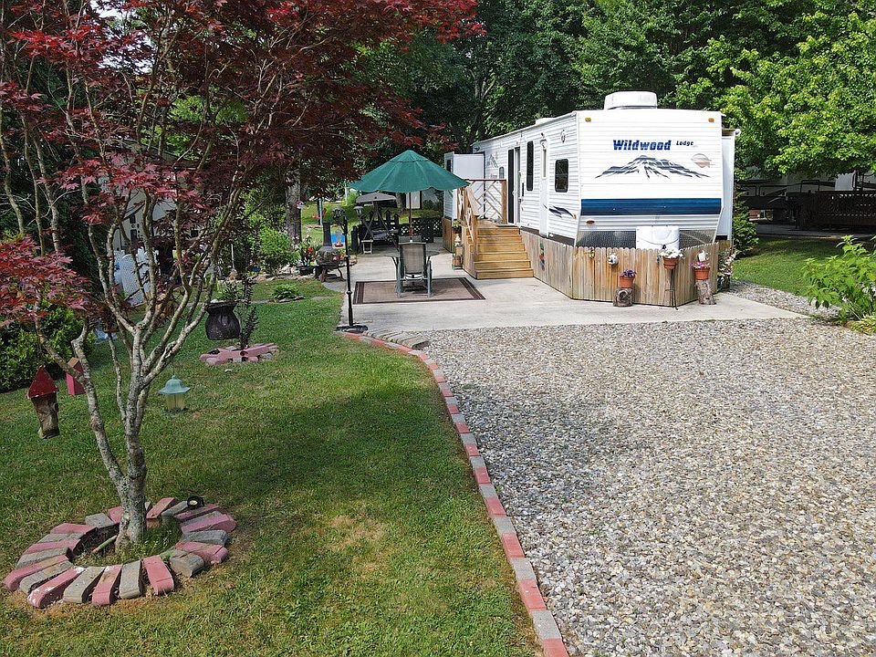 2BR/1.5BA Wildwood Lodge, 2008 by Forest River in Arrowhead Valley RV Resort. Comfortable living with affordable amenities. Hi speed internet, yard maintenance, garbage, community sewer, pavillion and unground Pool ( closed for maintenance) for $625/year. This lot is the largest lot in the community at .15 acres. Joins Green space and has wonderful outdoor living space. Shed offers extra storage, 2 Yr old shake roof. New electric logs. New awning 2022, newer commodes, coating on roof. Wonderful package ! HVAC propane and heat pump. Most furnishings remain. Split plan with private bedrooms. Many flowers and beautiful trees. Slide toppers.