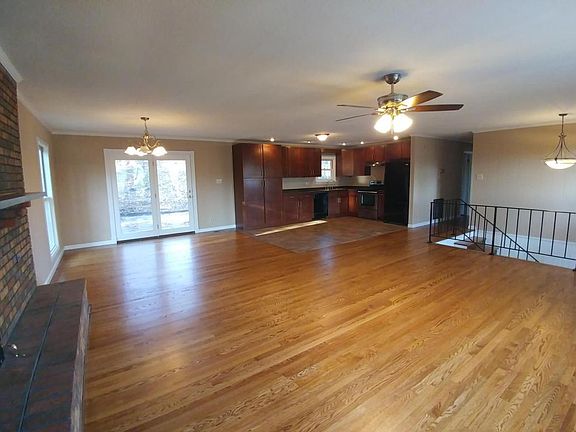 House is nestled in wooded lot with privacy!! Open floor plan. Updated kitchen with all appliances is open to living/Dining room with doors to deck. Updated bathrooms as well. Refinished hardwood flooring in LR,Dining,hallway and bedrooms. Downstairs has 3rd bathroom and huge Family/Rec Rm with new carpet and 2nd fireplace w/wood stove,laundry Rm and 2 car garage. Freshly painted interior & Exterior. New 30 yr roof. Playhouse and dog run in back