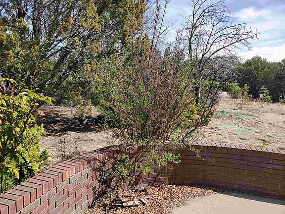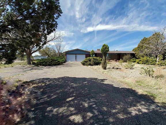 Home situated on 2.98 acres in Pajarito Acres. Front entry with flagstone floor, carpeted living room with a white brick fireplace and flagstone seating hearth. A beautiful bay window in the living room faces the front yard and allows natural light to enter. Dining room area. Beyond the living room is a roomy family room with large windows allowing light and a view the backyard and patio area. The kitchen has engineered, high-impact, wood flooring, beautiful tongue and groove ceiling, a center cooking island with exhaust fan, a separate built-in grilling area on one wall, double wall ovens and tiled counter tops. There is plenty of cabinet space, a new refrigerator and new dishwasher. A large garden window over the over-sized double sink in the kitchen looks out to the back yard. The kitchen also has a wood stove that can provide comforting warmth for chilly mornings and evenings. The master bedroom has a large walk-in closet with shelving, and a 3/4 bath. The 2nd bedroom has a counter with built-in sink and could be used for hobbies or paint studio. The large laundry room next to the kitchen, includes shelving and an exterior door to the back yard. The shop area with utility sink, oak cabinets and workbench has access to the large 2 car garage. A storage shed and barn building are also included on the property. The home has two natural gas forced air heating units. Ceiling fans.