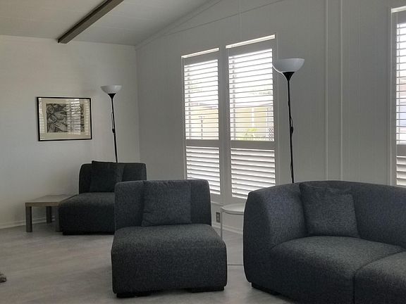 This charming bright and sparkly home can be yours! Two bedrooms and two baths, a family room open to the kitchen and a large living room, dining area combined to feel open and spacious. Very nice shutters grace the windows and the light grey laminate flooring gives the home a quiet feel. The outdoor patio can be a wonderful area to enjoy your cool mornings and view our wonderful mountains. You must qualify to live here and pick up an application at the office . Proof of income of at least $2500 and a high FICO Score without dings is necessary.