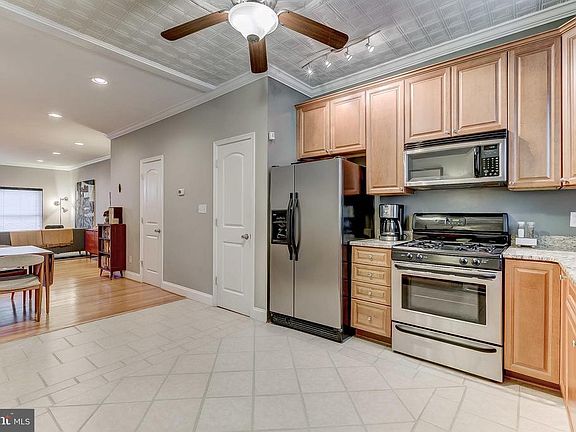 Beautiful high quality brick front renovation with open floor plan. This 2 Br/2.5 Ba (possible 3rd BR in basement) home offers a gourmet kitchen, with tile floor, 42 inch cabinets, granite counters, exquisite tin ceiling and stainless steel appliances. Enjoy hardwood floors, 2 over sized bedrooms, recessed lighting, tray ceiling in master BR, main level half bath, exposed brick, attention to detail, spacious rooms, high ceilings, large finished room in basement and a huge fenced in back yard. Seller will contribute $3,500 towards installing parking pad.
