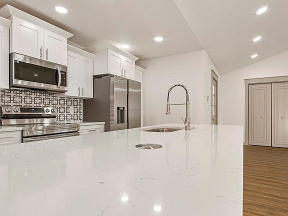 You will then be wowed by the 9 ft kitchen island and modern touches! Incredible recessed lighting all throughout along with LVP Flooring. Both bathrooms feature double vanities/sinks and tiled craftsmanship. New HVAC, new roof, new windows, siding and concrete driveway! Enjoy the evenings or morning sunrise on the fantastic backyard deck made for entertaining. There is also a powered shed for more storage outback! This is a must see!