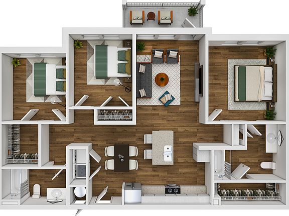 Sleek finishesElegant granite countertopsStainless steel appliancesWood-style floors