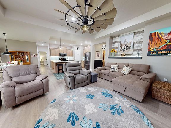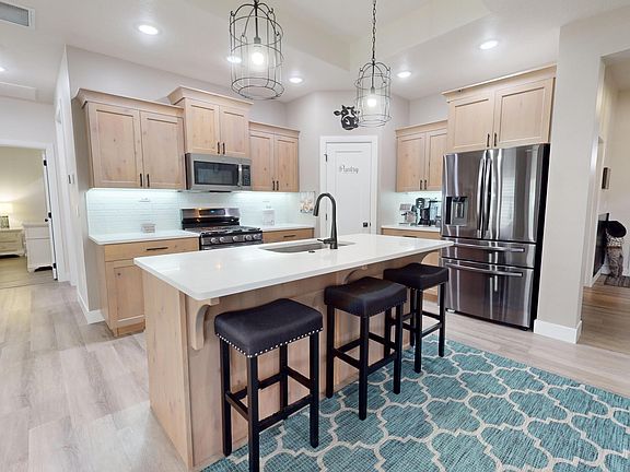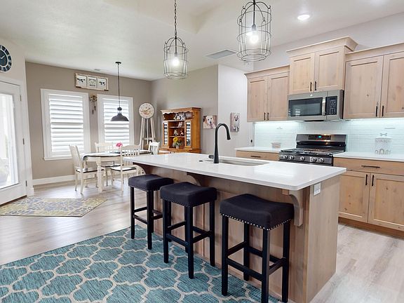 Welcome to your dream home: a beautifully designed, energy-efficient smart home with cutting-edge features and premium finishes throughout. This residence offers the perfect blend of comfort, style, and technology, ensuring a luxurious living experience. Inside, you'll find upgraded Luxury Vinyl Plank (LVP) flooring in the bedrooms and main living areas, providing a sleek, modern look that's both durable and easy to maintain. The state-of-the-art smart home system includes a Ring alarm system, smart lighting, and a smart thermostat, allowing you to control your home's ambiance and energy usage effortlessly. The kitchen is equipped with a nearly new upgraded gas stove. The windows feature plantation shutters and window tint, ensuring privacy and energy efficiency throughout the year. A cozy pellet wood-burning stove in the living room is perfect for chilly nights and snowy days, while large windmill ceiling fans in the living room and primary bedroom provide excellent air circulation with a touch of rustic charm. The whole house fan system keeps your home cool and comfortable during the warmer months, and a convenient laundry area with a washer and dryer makes laundry day a breeze.