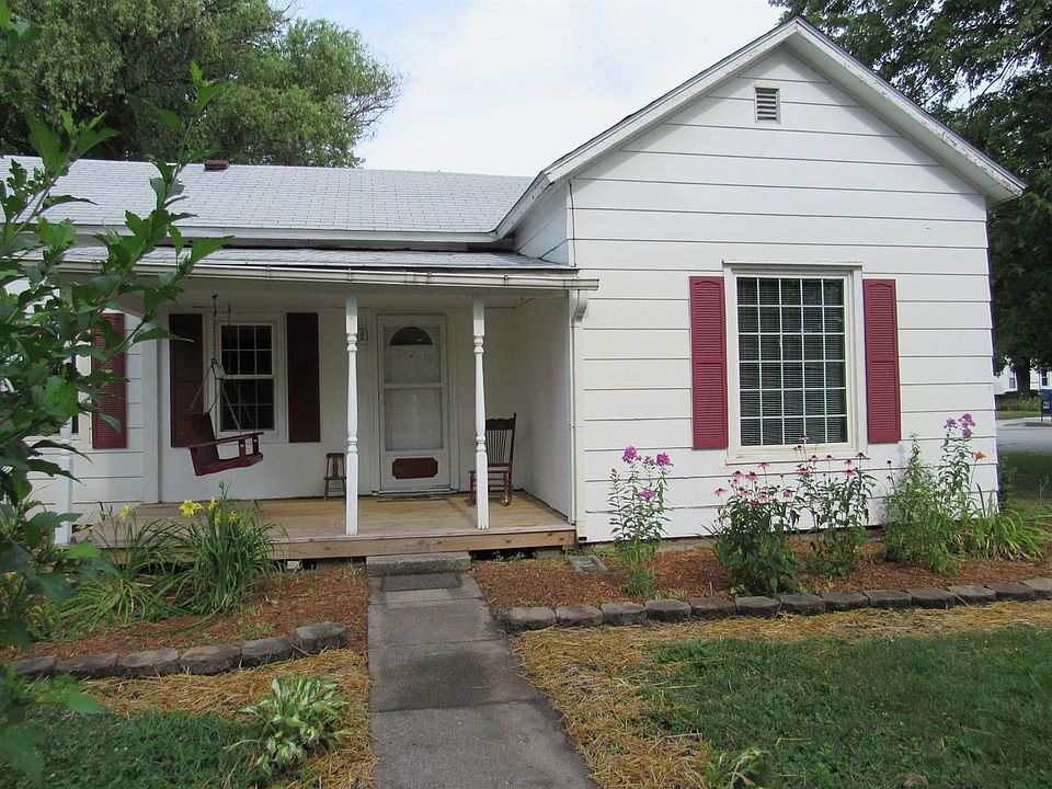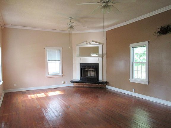 All this home needs is a little TLC for you to move right in and start enjoying quiet evenings on your front porch swing. There are 10 foot ceilings throughout this 1909 home. The living room has a wood burning fireplace and hardwood floors, there are 2 bedrooms, 1 full bath, a large eat in kitchen and an enclosed porch. This home sits on a double lot with a fenced backyard and detached 2 car garage. The home is being sold as is.