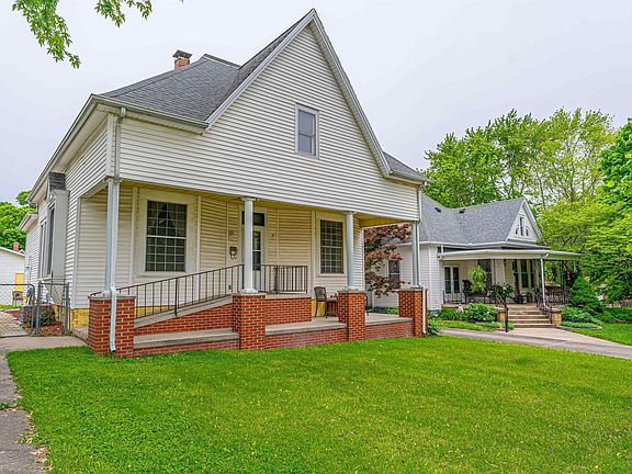 Highly convenient location with numerous types of amenities within easy walking distance. This well cared for three bedroom, two full bath bungalow features vinyl siding, replacement windows, very spacious formal dining room, large enough to accommodate all your entertaining needs, with adjacent pantry, hardwood flooring, updated kitchen with eye-catching tile countertops. All kitchen appliances to stay, in addition to a 2nd fridge in garage. The front entry area is very welcoming, with a double door entry into the front bedroom, which also has a decorative fireplace! Really neat kitchen with appealing tile countertops & recently re-decorated, all kitchen appliances included! Continue down to the full basement where you'll find ample storage spaces, and lots of room for recreational desires. The exterior has an inviting front porch, vinyl siding, replacement windows, a fenced back yard featuring lots of seclusion, patio, an architectural rood and a very spacious 3 + car detached garage with rear alley access!!