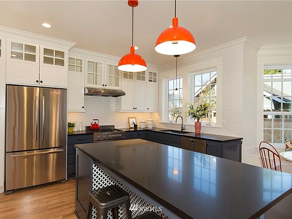 Exquisite custom home in desirable Phinney Ridge! Come in from the gray into unexpected color, warmth & whimsical interiors. This home features all the charming details of the old. Welcoming living room, formal dining room and entertainment-sized kitchen with French doors to large deck & fenced, landscaped yard. 3rd floor family room with views. Perfect lower level guest suite w/outside entrance. A wonderful oasis for the urban dweller. An inspiring work of art. Enjoy!