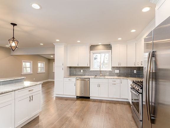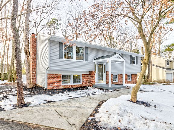 Absolutely beautiful 5 Bedroom and 2 Full Bath Bi-Level home in Medford Lakes! This entire home has been redone from top to bottom with no expense spared. The interior of the home boasts gorgeous brand new hand scraped wood flooring throughout the main floor, an open floor plan, new light fixtures, new 6 panel doors, a large living room that is open to the dining room, recessed lighting, all new neutral paint throughout, a huge family room with a wood burning fireplace, large bedrooms throughout, 2 Full baths with all new vanities, granite counter tops and tiled showers, a new window over the sink looking over the backyard, a walkout basement to the back patio, a breakfast bar w/ stools, a sun room off the dining room, and top it all off with a unbelievable kitchen the offers new white cabinets w/ 42" upper cabinets, new stainless steel appliances, a tile back splash, and granite counter tops. The exterior of this home offers all new vinyl siding, a new roof, a brick front with a covered front porch, all new windows, new gutters, a paved driveway, a large lot with the back of the property fenced, a large patio, and a huge fiberglass deck with a vinyl railing and steps down to the patio. Don't miss your opportunity to see this wonderful home.