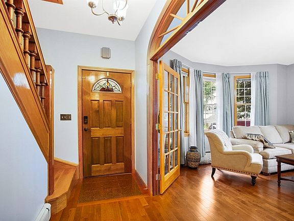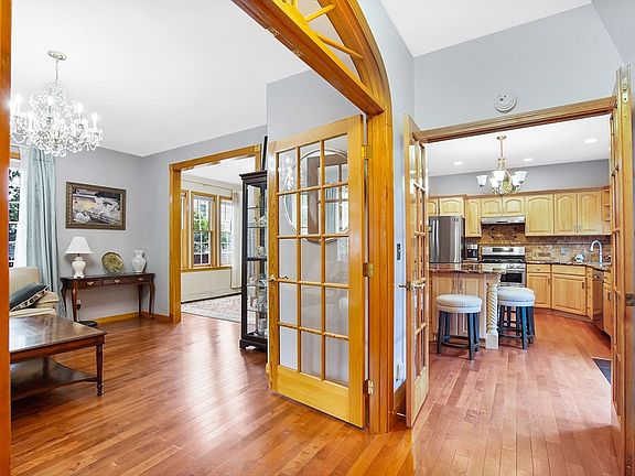 Discover this traditional colonial home featuring a welcoming front porch, lush landscape and garden area; upon entering you’re greeted by a foyer w/ two sets of French doors leading to the kitchen and the open living/dining area which is illuminated by expansive windows, adorned with elegant chandeliers, &highlighted by gleaming hdwd floors throughout.The kitchen is equipped with SS appliances, granite countertops, an island, & spacious outdoor deck conveniently accessible from the kitchen- perfect for gatherings! Included on the main level is a home home office & a full bath w/ a jaccuzi tub, an integrated laundry area, and storage for added convenience.Upstairs, the bedrooms feature hardwood floors, ample closet space,& cozy sunroom ideal for relaxing.The finished basement offers a versatile bonus room, additional storage, & plenty of space.This home w/ timeless architecture & modern comforts creates an ideal setting for every everyday living& entertaining! Schedule your tour today!