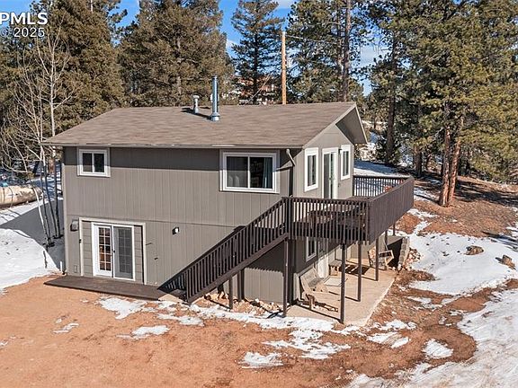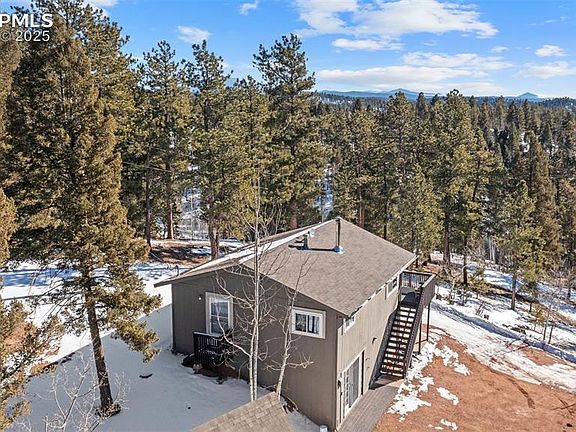 Mountain Getaway! Escape to your own slice of Colorado paradise with this stunning 4-acre property! Nestled among a picturesque blend of pine and aspen trees, this mountain retreat offers breathtaking panoramic views of the Sangre de Cristo Mountains and Crystal Peak from its walkout upper deck. Located near Pike National Forest, this home is the perfect gateway to year-round adventures including fishing, hunting, hiking, ATVing, and skiing are all just minutes away. Inside, the cozy living room features a wood-burning stove and direct access to the deck, creating a warm and inviting atmosphere. The property also includes a convenient storage shed to house all your outdoor gear. Experience the best of Colorado living in this serene mountain escape!