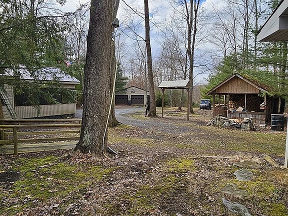 Cabin on 8.72 acres with access to Bloody Skillet ATV Trail! Private setting, large garage for all your toys and nice tree stands on the property for your hunting adventures! There is deeded walking access to Sproul state forest.