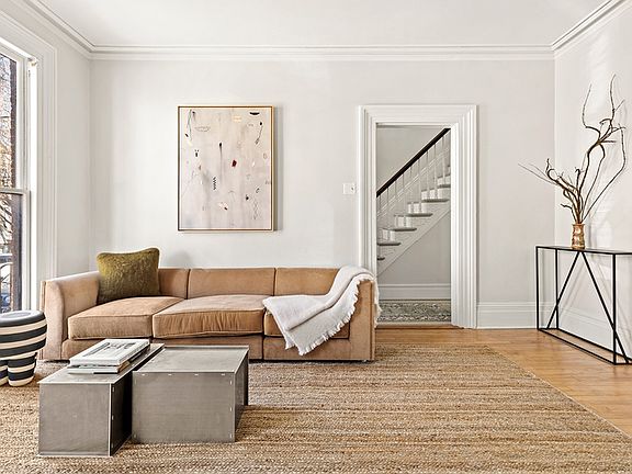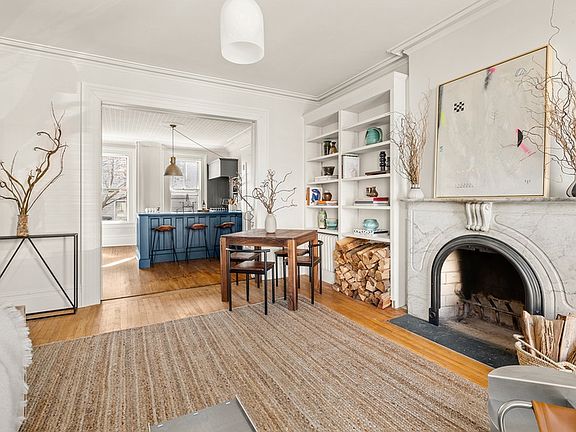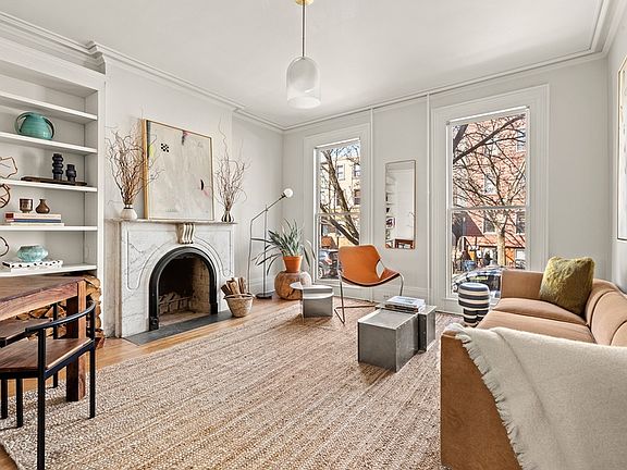 Rarely does a handsome 25 foot wide townhouse of this quality and style become available for sale at the perfect intersection of Greenpoint and North Williamsburg on one of Greenpoint's most picturesque blocks. This brick gem contains not only one home but a second single family detached home at the back of the property which includes its very own backyard. Enter the main house and experience the warmth of old-world charm and original details with a sky light letting light in all day. The main three-story house has been kept in beautiful condition and offers high ceilings throughout with an open living/dining area with two large windows overlooking a beautiful front yard. The wood burning fireplace is perfectly situated between both rooms bringing in the true coziness of what this home is all about. The south facing windowed kitchen was recently renovated with tons of storage and looks out onto the south facing courtyard. The adjacent home office shares the same light and view which is a gift for anyone working from home. One floor up you will find three sunny bedrooms with excellent closet space and a beautifully renovated large bathroom. The lower floor of the house could easily be set up as one-bed one-bath rental with a chef's kitchen and private entrance or be integrated with the rest of the home to create an incredible single family house with three floors. Step outside and cross the courtyard to find the gem of all gems. The single family detached two-bedroom one-bath home on two levels offers more than any other two-bedroom rental in the area with an eat in kitchen, oversized living room, two-bedrooms on the second level, a generous sized backyard and a cellar for the ultimate storage situation! 112 Oak Street is truly one of a kind with all of the amenities that the North Brooklyn waterfront has to offer, including Parks, award-winning restaurants and schools in every direction. The G train at Greenpoint Avenue is a few block away, and there are also monthly parking spaces available in nearby local garages.