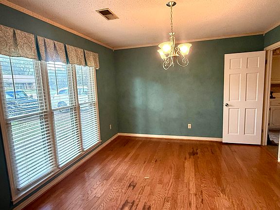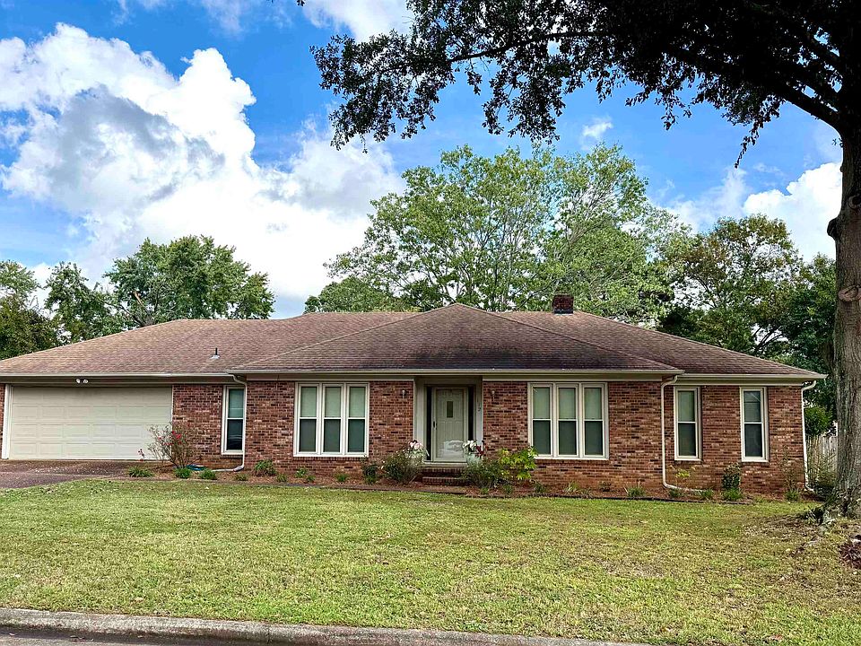 One Level Brick Home in popular Oak Hill Sub. 4 Bedrooms featuring split Bedroom Plan. Large Foyer. Formal Dining Room (Hardwood) Large Family Room featuring Fireplace with Gas Logs, Builtins, Beams, and open to the kitchen area. Large Kitchen featuring multiple cabinetry, island, ceramic tile, and cute breakfast nook with bay window and built in china cabinet. Sunroom overlooks Very Large Privacy Fenced Backyard! Level Lot. HVAC only 3 years old.
