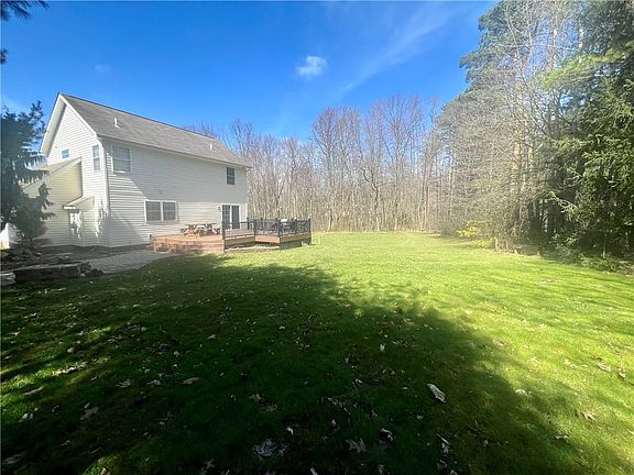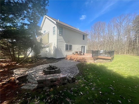 Bid welcome to 112 Old Forge Road. This 2 story vinyl and brick colonial is positioned upon a 1.028 ac cul-de-sac lot. Enticing neighborhood benefitting bike rides and daily walks. Make your entrance through the front door toward the open 2 story foyer. Take a breather and enjoy family time in the living room with the cozy fireplace. Enjoy the bright open concept space of the kitchen and congregate in the casual dining area. 1/2 bathroom rounds out the first level. Make your way to the 2nd level encompassed in hardwood flooring. This level accommodates the primary bedroom and bathroom together with 2 additional bedrooms and full bathroom. Have your get togethers on the rear deck with family, friends, and neighbors all the while enjoying the wooded backyard and added extra space.